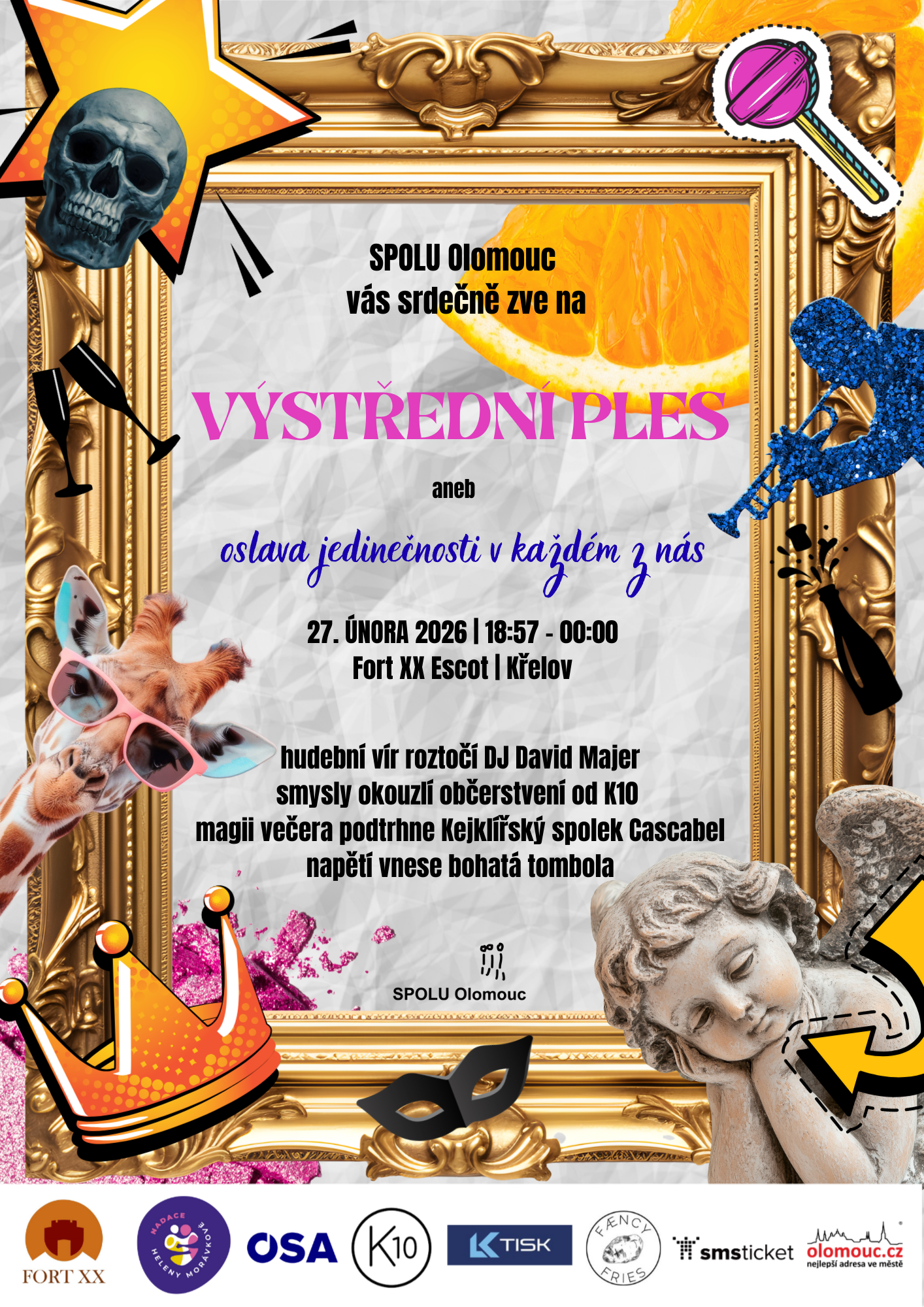 SPOLU Olomouc, z.ú. Vás srdečně zve na Výstřední ples, který bude oslavou jedinečnosti v každém z nás. Oslňte, překvapte, zaskočte, vyveďte z míry nebo se prostě jen přijďte pobavit :-)