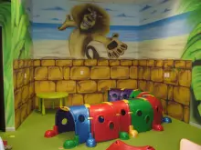 Dětský koutek pro děti vybavený hračkami a prostorem pro hraní.