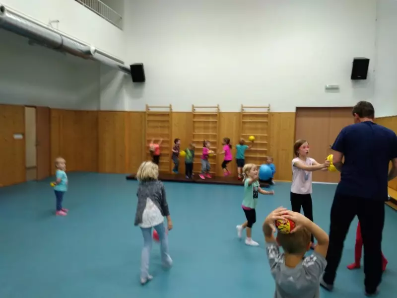 V tělocvičně je veškeré vybavení pro rozvoj koordinace, postřehu, zlepšování fyzické kondice a v nemalé míře také vznik nových kamarádství. Pro tuto věkovou skupinu je přátelství a spolupráce ještě novinka. Některé děti nemají zkušenosti s partou ve školce, jiné děti, které jsou v tomto směru mazáci, jim pomáhají a krásně je začleňují do kolektivu.